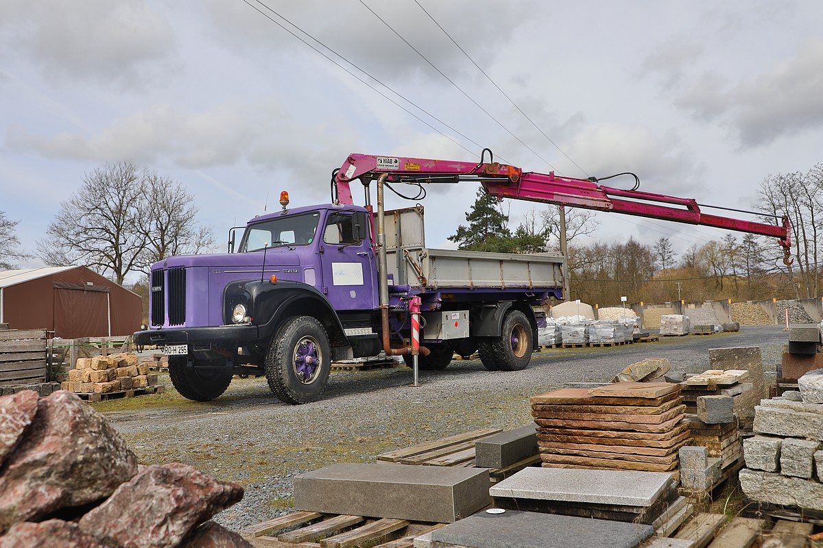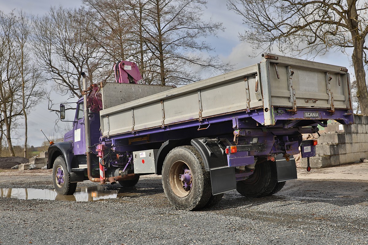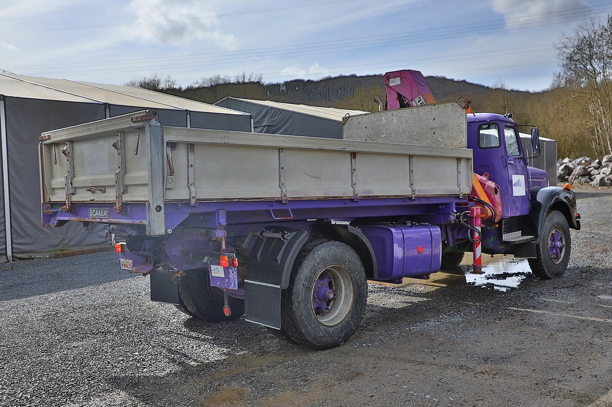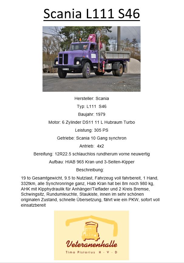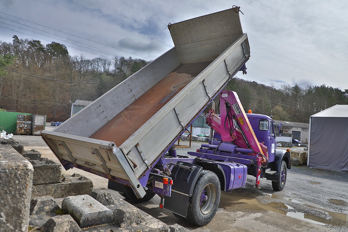 | Aufbau | Dreiseiten-Kipper mit HIAB 965 Kran |